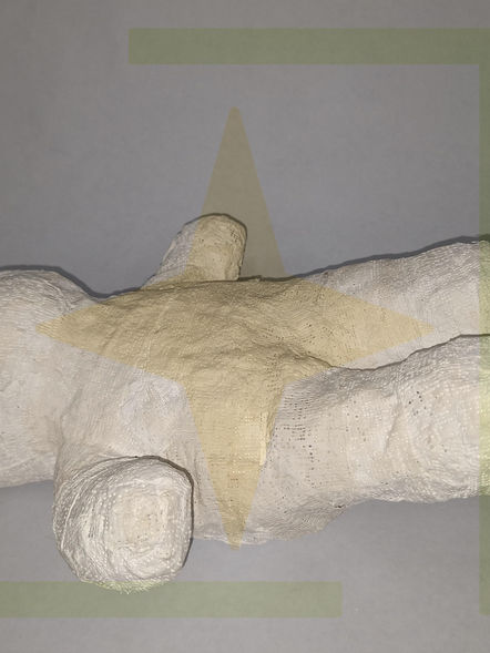 stuffed bear covered in plaster cloth